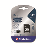 Verbatim Pro U3 Micro SDXC Memory Card 512GB with SD Adapter 47046